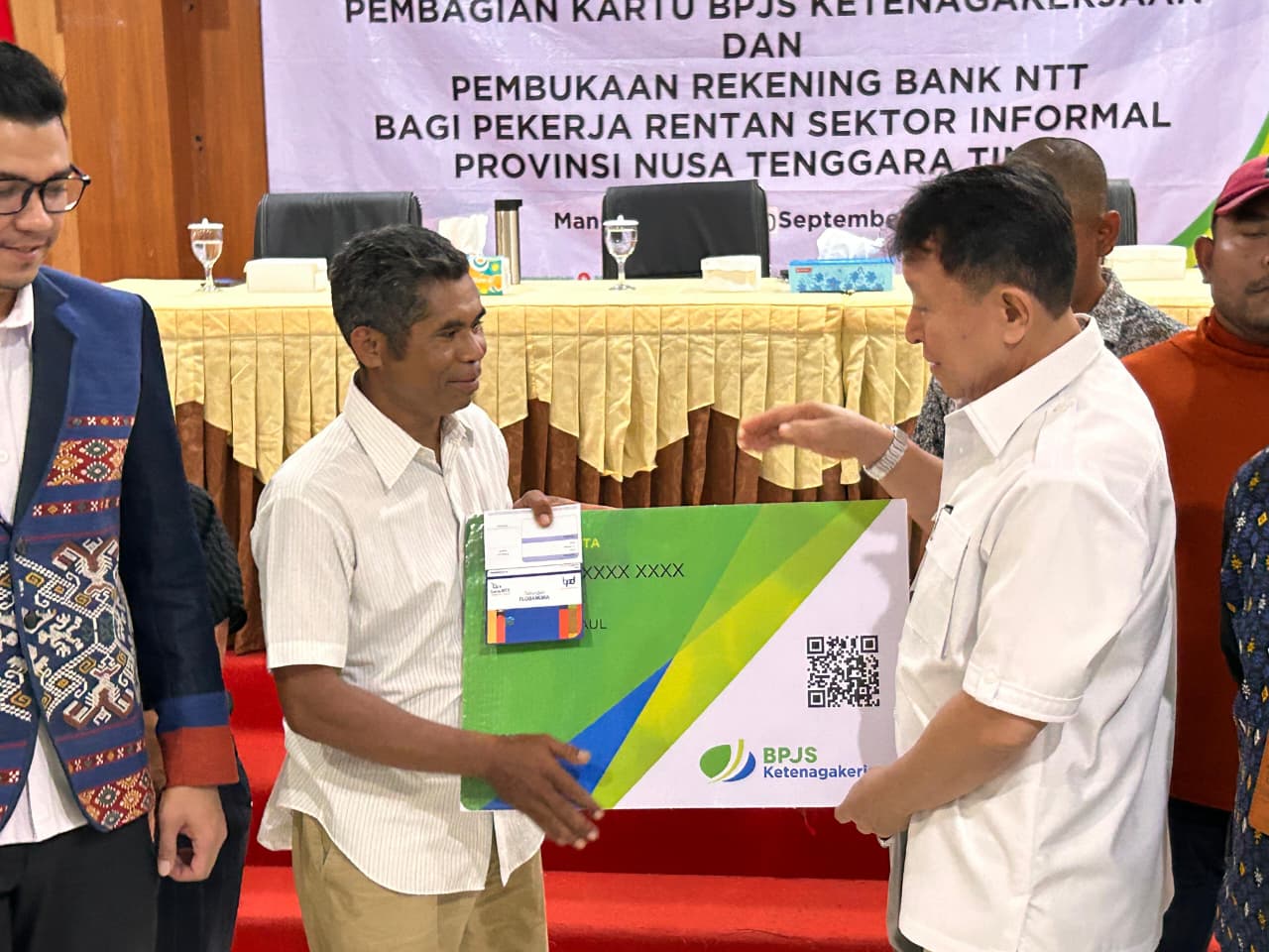 Para pekerja rentan yang hadir dalam launching tersebut merasakan manfaat langsung dari program ini. Mereka tidak hanya mendapatkan kartu BPJS Ketenagakerjaan, tetapi juga dibukakan rekening di Bank NTT secara gratis.