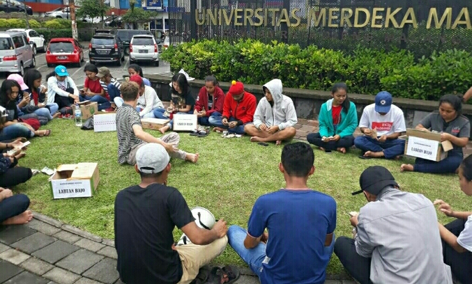 Tak hanya itu, salah satu peserta aksi, Eufronius Seram selaku perwakilan dari LMND dalam orasinya menyampaikan; “Aksi galang dana ini diadakan atas dasar prinsip dilandasi rasa kemanusiaan yang saling Bergotong royong untuk berkontribusi seberapa besar atau kecil berupa material sesuai keiklasan hati dari saudara-saudari sekalian.