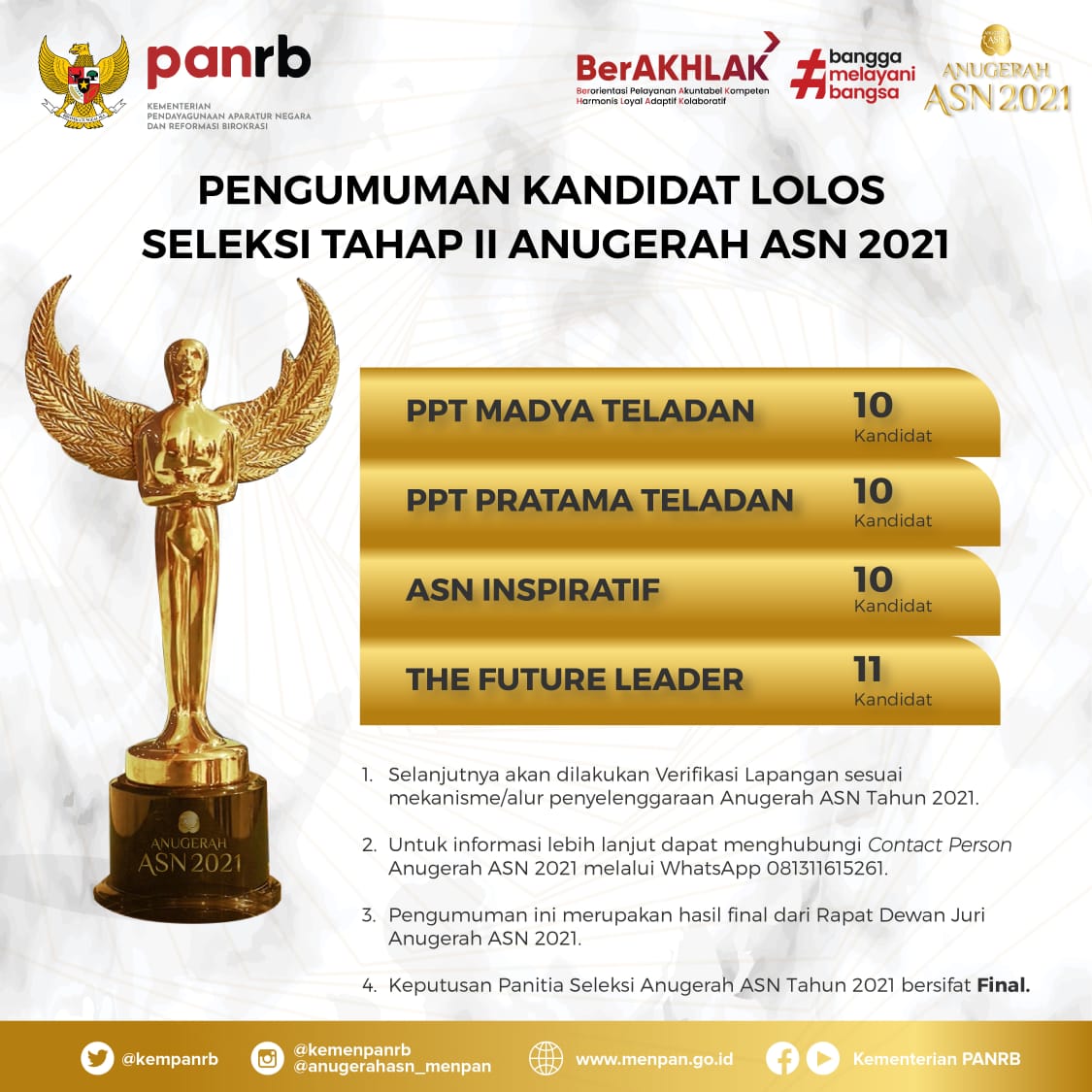 Anugerah ASN 2021, Kementerian PANRB Tetapkan 41 Kandidat Lolos Tahap II