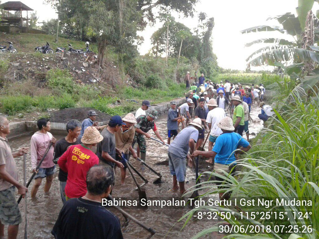 Babinsa Sertu Ngurah Mudana mengatakan karya bhakti pembersihan aliran sungai yang memiliki panjang sekitar 200 meter tersebut bertujuan untuk memperlancar aliran air sungai ke sawah yang selama ini airnya semakin mengecil dikarenakan banyaknya sampah yang dibuang oleh masyarakat sekitar ke sungai serta banyaknya tumpukan material kiriman yang berasal dari Erupsi Gunung Agung.