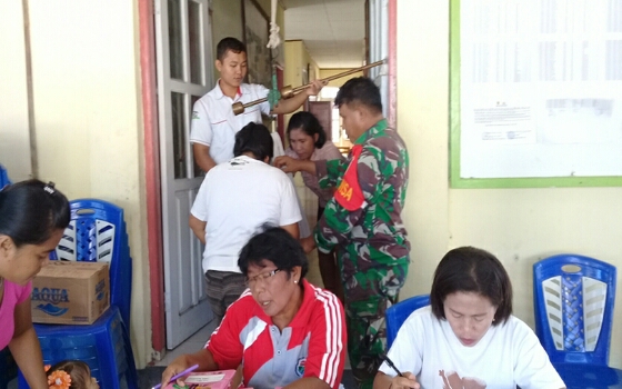 Menurutnya, tidak hanya sebatas melakukan pendampingan terhadap Tim Puskesmas dan Nusantara Sehat, akan tetapi bapakbapak Babinsa juga turut serta dalam membantu pelayanan, antara lain membantu mendata, melakukan pengukuran tinggi badan, timbang berat badan bagi para peserta Pelayanan Posyandu baik Balita dan juga bagi Lansia, imbuhnya.
