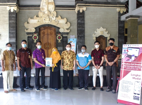 Beritafajartimur.com (Denpasar-BALI) | ITB STIKOM Bali dan Bamboomedia bersama Dinas Komunikasi, Informatika, dan Statistik (Diskominfos) Kota Denpasar bergerak cepat, seakan berpacu dengan waktu guna menyiapkan Bali bebas Covid-19, Selasa (24/08/2021) kemarin, Banjar Merta Nadhi di Jl. Gadung No. 47 Desa Dangin Puri Kangin, Denpasar Utara dipilih sebagai pilot project pemasangan QRCode guna melacak mobilitas penduduk yang datang di Banjar tersebut, sekaligus sosialisasi riset Ideathon Bali Kembali.