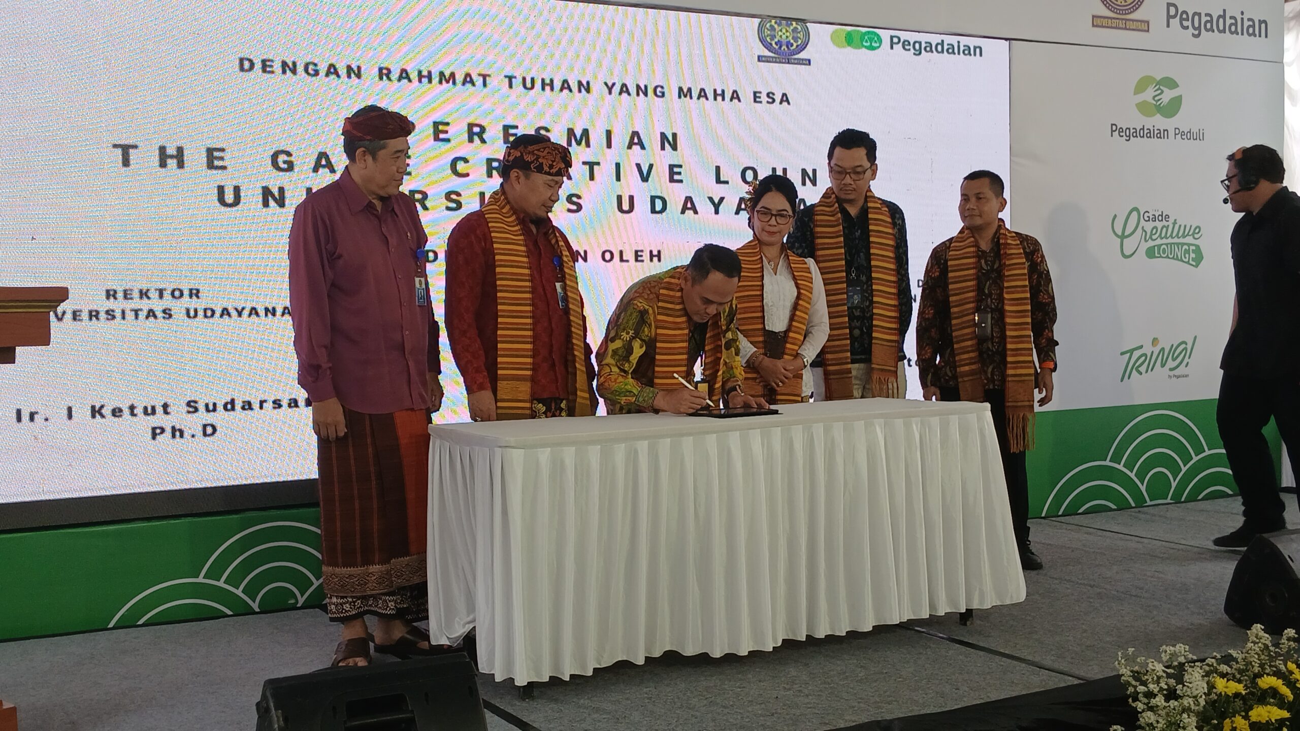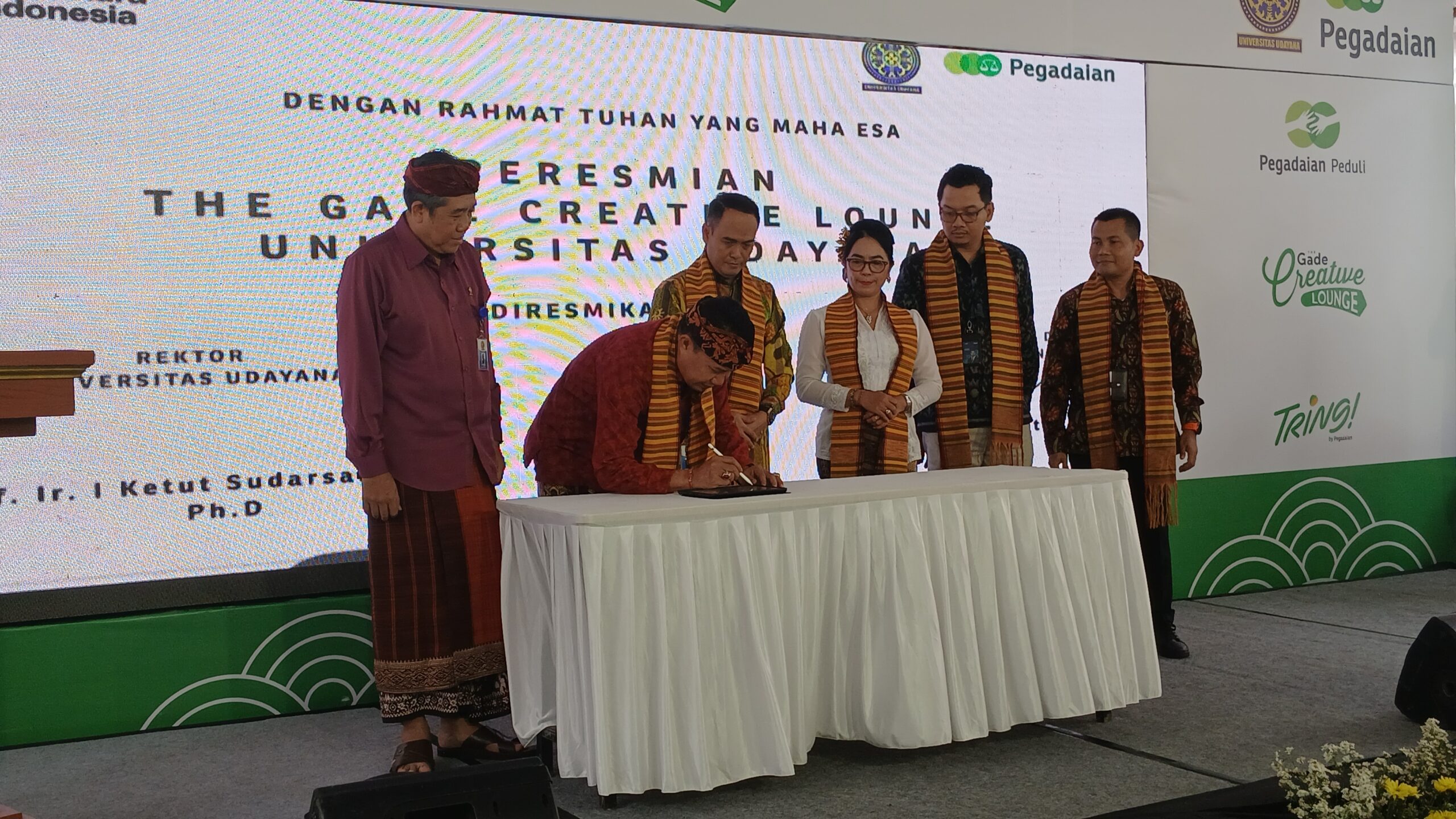 PT. Pegadaian berkolaborasi bersama Universitas Udayana melaksanakan Peresmian ‘the Gade Creative Lounge’, yang dilakukan pada Kamis (29/01), bertempat di Universitas Udayana Kampus Bukit, Kec. Kuta Selatan, Kabupaten Badung, Bali.