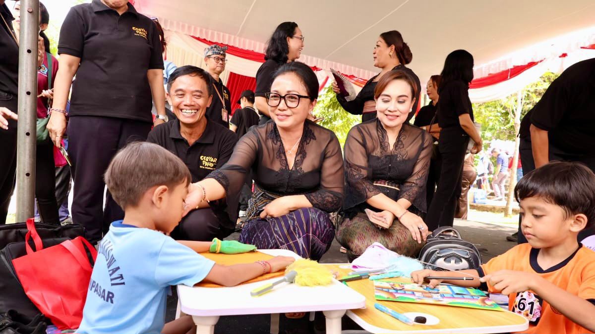 Bunda PAUD Kota Denpasar Ny. Antari Jaya Negara menghadiri sekaligus meninjau lomba kreativitas anak dan pendidikan PAUD Kota Denpasar dalam rangka Gebyar PAUD Kota Denpasar 2026 yang diikuti gugus PAUD se-Kota Denpasar, di panggung selatan Lapangan Lumintang Denpasar, Kamis (23/4).