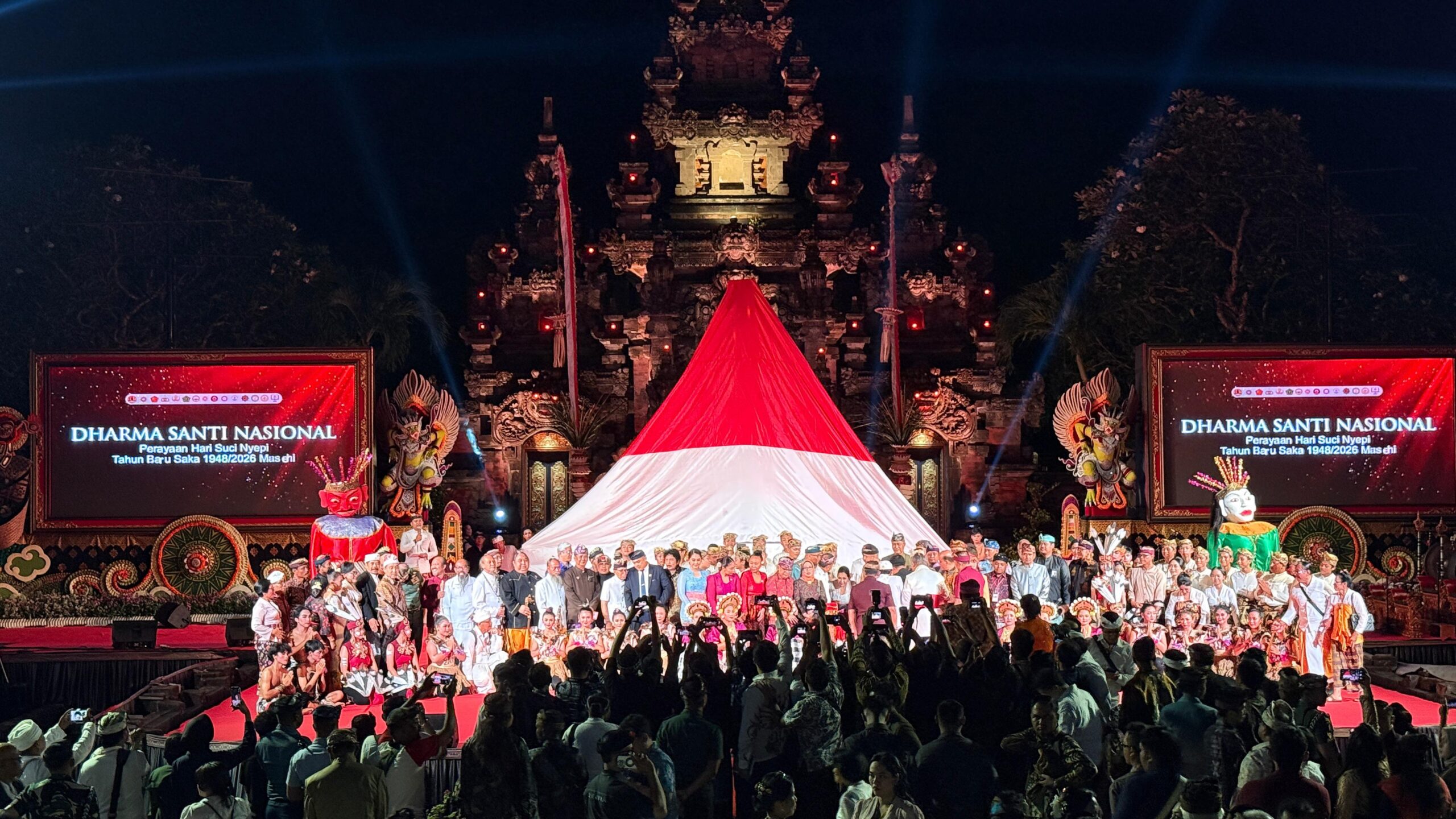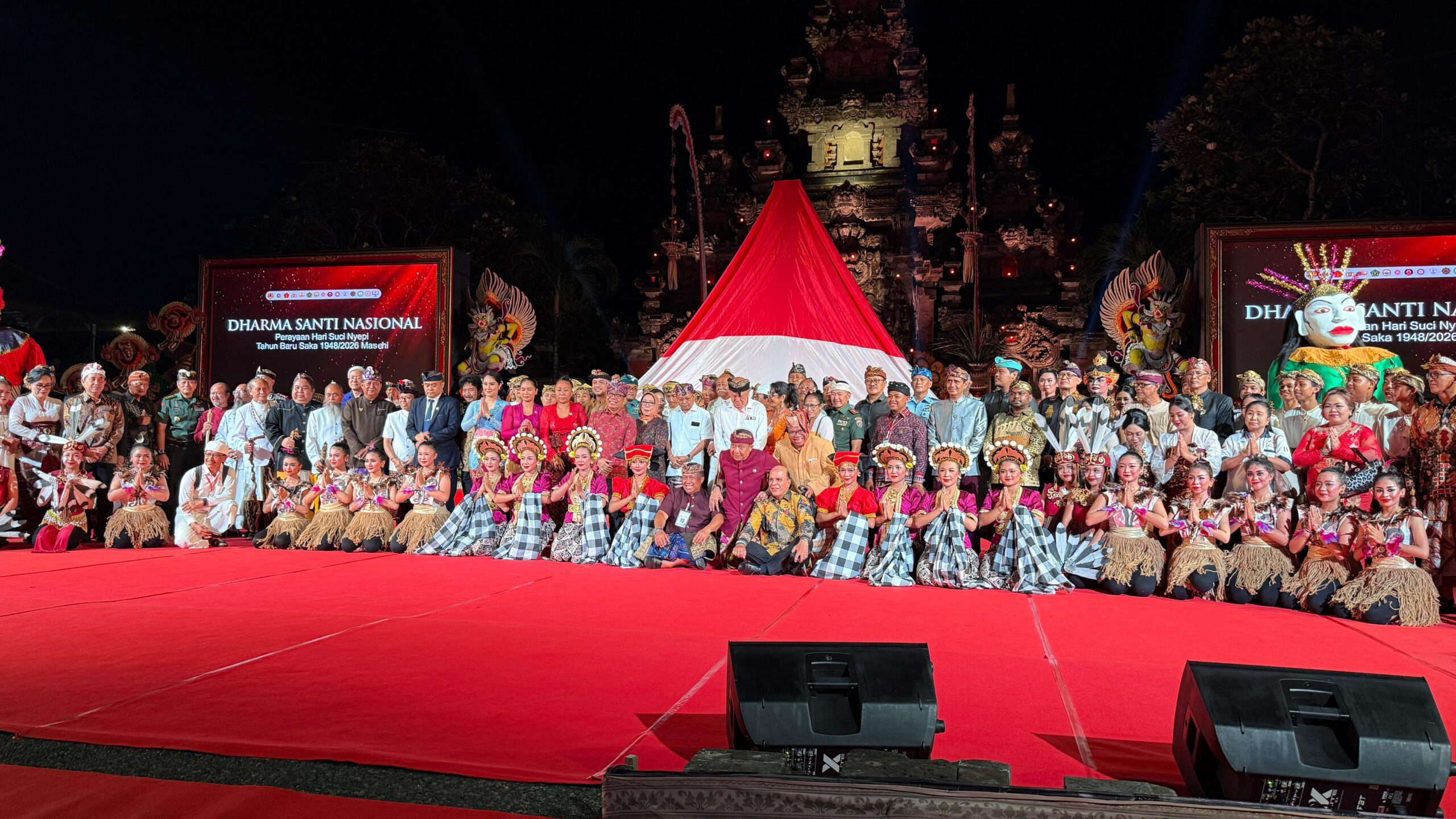 BERITAFAJARTIMUR.COM (Denpasar) Panitia Perayaan Hari Suci Nyepi Tahun Saka 1948/2026 menggelar Dharma Santi Nasional 2026 di Panggung Terbuka Ardha Candra, Taman Budaya (Art Center), Denpasar, Jumat (17/4/2026).