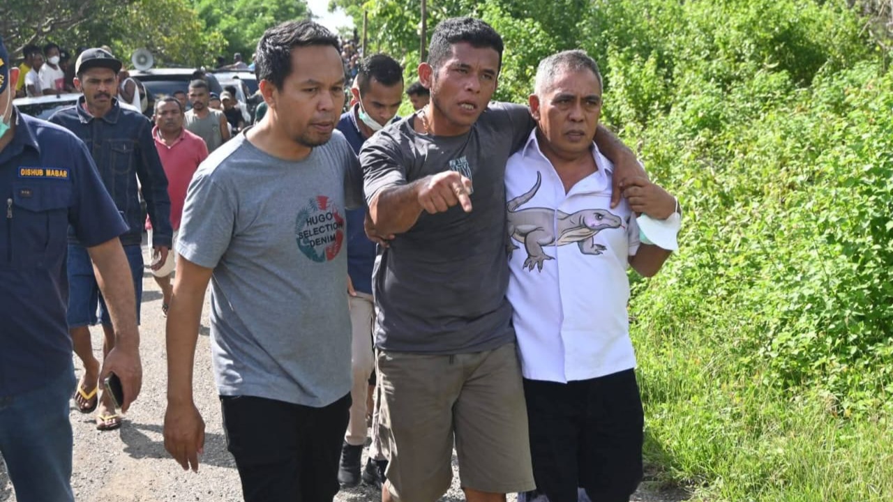 Langkahnya pelan, wajahnya muram. Sejak awal pencarian, ia telah memilih untuk berada di sisi keluarga korban menjadi saksi, sekaligus penopang di saat duka belum menemukan kata.