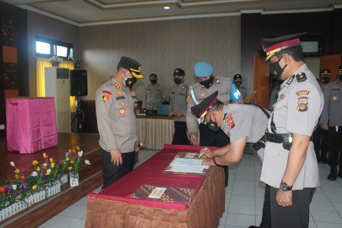 Serah terima jabatan diikuti oleh Waka Polres Gianyar Kompol I Nyoman Wirajaya, S.H., M.H., pejabat utama Polres Gianyar, Kapolsek Jajaran serta perwakilan dari Satuan Lalulintas dengan tetap menerapkan protokol kesehatan.(BFT/GIA/Hen)