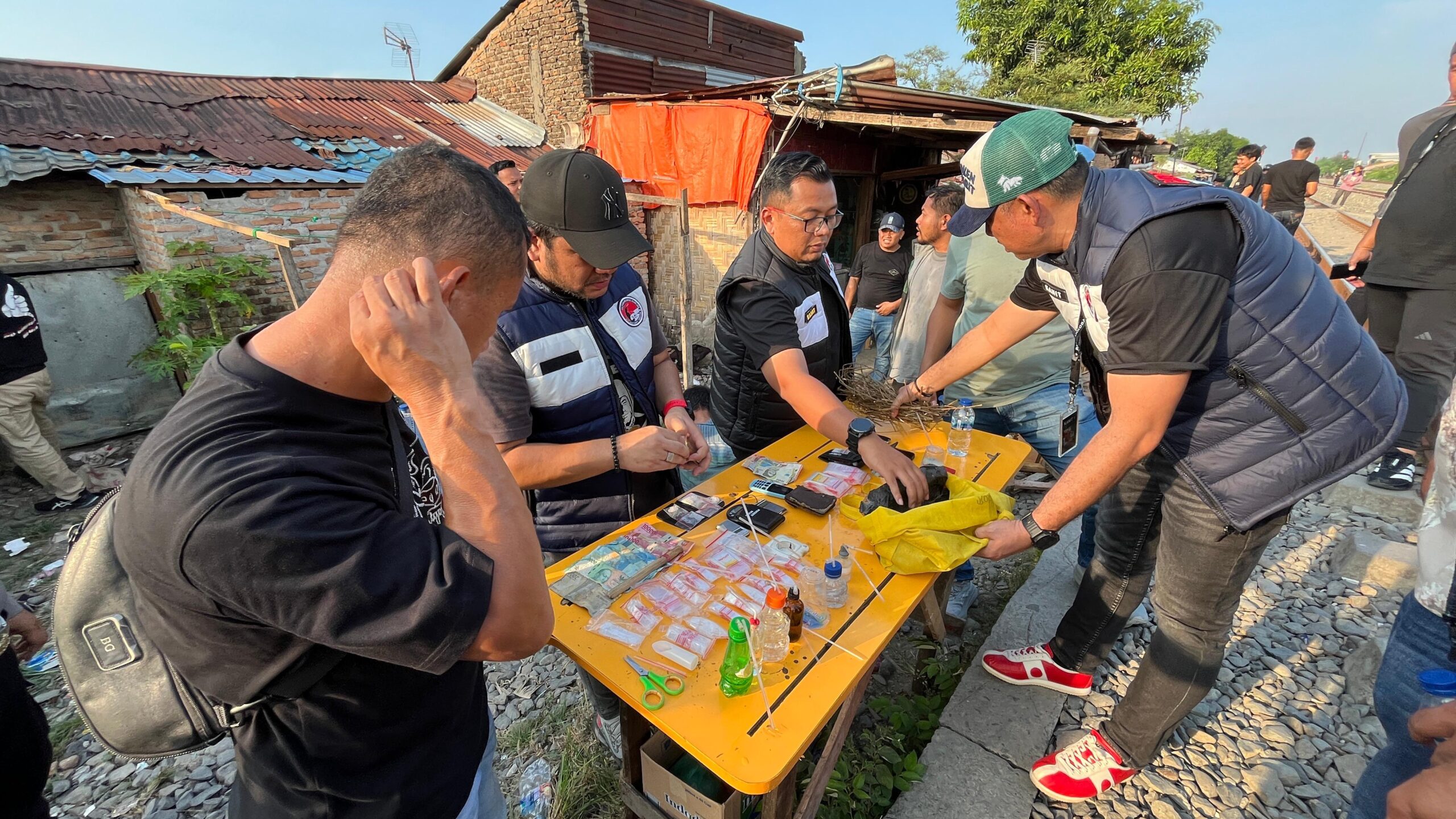 Dua titik sarang Narkoba. di bantaran Rel KA Tembung yang jadi sasaran kali ini, Gang Nusa Indah, dan Gang Pisang, Desa Tembung, Kecamatan Percut Seituan. Sedangkan identitas 4 pria yang diduga pelaku Narkoba yakni DS (40), AF (20), SH (37), dan ZS (48) keempatnya diringkus berikut barang bukti Narkotika jenis sabu yang jumlahnya tidak sedikit.