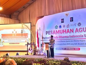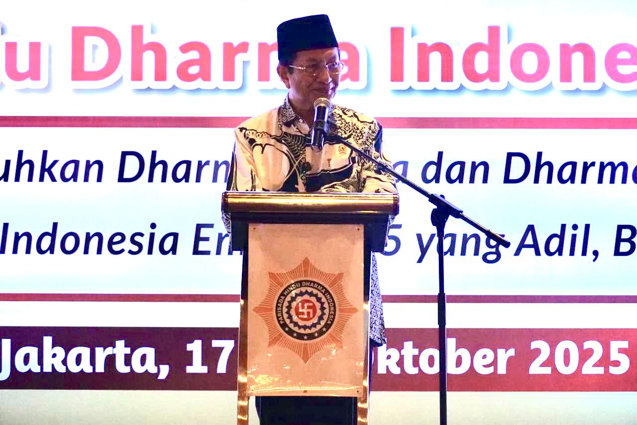 JAKARTA-BERITAFAJARTIMUR.COM,- Menteri Agama RI, Nasaruddin Umar, menegaskan pentingnya kesadaran spiritual dan ekologis dalam menjaga keharmonisan hidup manusia dengan alam semesta. Hal itu disampaikan dalam acara Pesamuhan Agung Parisada Hindu Dharma Indonesia (PHDI) Pusat, yang digelar di Jakarta, Jumat (17/10/2025).