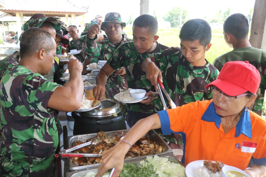 Kegiatan yang kita laksanakan siang ini adalah merupakan kegiatan Guyub/santap siang bersama Persit KCK cabang XXXIV Kodim 1611/Badung, dimana kegiatan ini sangat diperlukan dikarenakan dapat memberikan semangat kepada para anggota Satgas TMMD khususnya personel Kodim 1611/Badung. Kegiatan ini adalah salah satu sarana bagi ibu-ibu Persit KCK cabang XXXIV Kodim 1611/Badung untuk memberikan semangat kepada bapak- bapaknya yang hampir 3 Minggu tidak bertemu dengan keluarganya,”jelas Dansatgas.