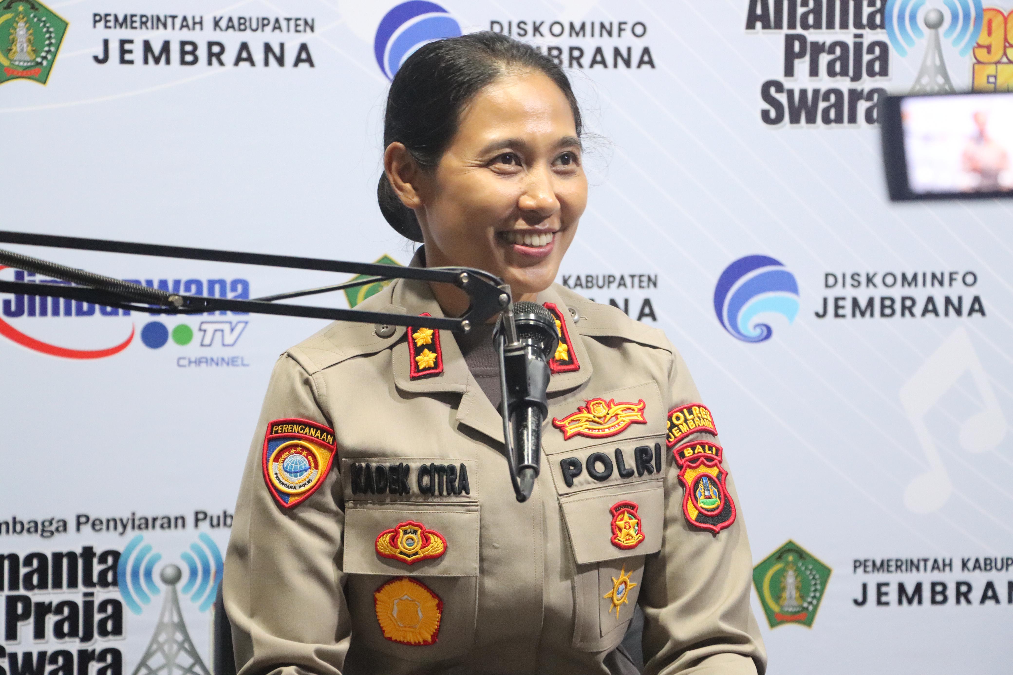 BERITAFAJARTIMUR.COM (Jembrana) Kapolres Jembrana, AKBP Kadek Citra Dewi Suparwati, S.H., S.I.K., M.I.K., mengajak masyarakat untuk bersama-sama menjaga keamanan dan ketertiban di wilayah Jembrana. Hal tersebut disampaikan saat menjadi narasumber dalam acara talk show di Radio Ananta Praja Swara, Rabu (28/5/2025) siang.