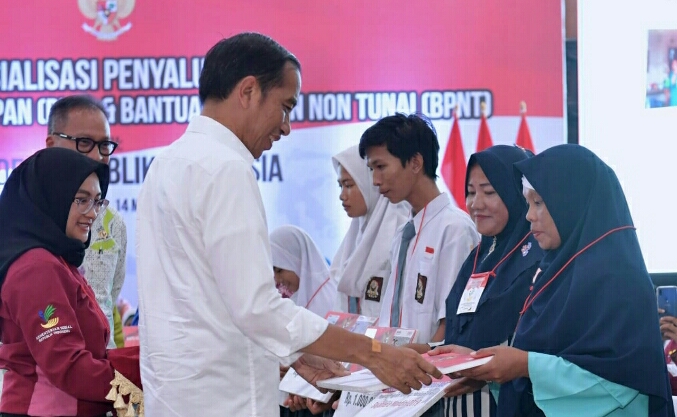 “Ibu dapat berapa? Coba saya lihat tinggal berapa (saldonya). Nah ini masih ada sisa Rp580 ribu di tabungan,” tutur Presiden sambil membaca buku tabungan BNI milik Titik.