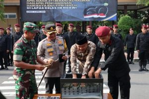 Dalam apel tersebut turut dilaksanakan pemusnahan barang-barang terlarang hasil dari razia blok hunian selama tahun 2023. Barang bukti tersebut dimusnahkan dengan cara dibakar, dan direndam dalam air. Pemusnahan dilaksanakan oleh Kalapas bersama Wakil Bupati Ngawi, Kapolres Ngawi, dan Dandim 0805/Ngawi.
