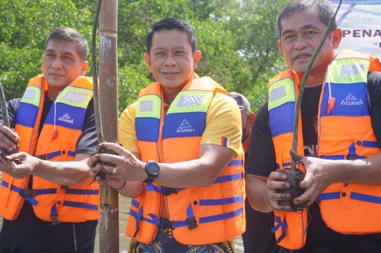 Beritafajartimur.com (Denpasar-BALI) | Kepala Kepolisian Daerah Bali, Irjen. Pol. Drs. Putu Jayan Danu Putra, S.H., M.Si., menghadiri penanaman serentak pohon mangrove yang di gelar oleh Kodam IX/Udayana di Balai Pengendalian Perubahan Iklim Bali-Nusra, Denpasar Selatan pada, Selasa (28/12/2021).