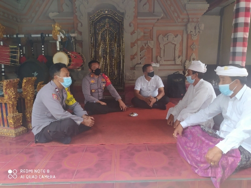 Kapolsek juga mengharapkan agar para tokoh memberikan himbauan kepada masyarakat khususnya para umat Hindu dalam melaksanakan kegiatan keagamaan. Terutama dalam pelaksanaan kegiatan pecaruan untuk selalu mematuhi dan menerapkan Protokol Kesehatan, sehingga upaya pencegahan dan pengendalian Virus Covid-19 bisa terlaksana dengan baik.