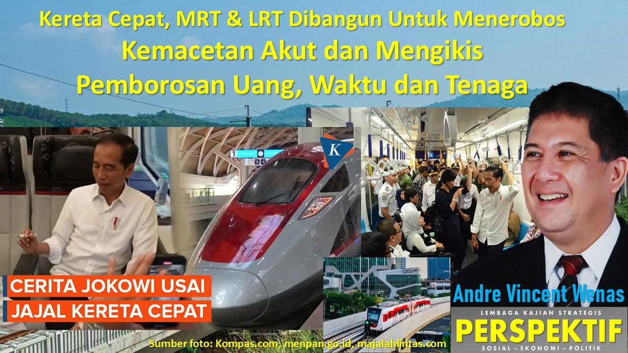 Dalam suatu acara Jokowi pernah menerangkan begini, kita kehilangan sekitar Rp 65 triliun sampai Rp 100 triliun setiap tahun lantaran kemacetan parah di Jabodetabek. Bisa kita pahami dengan mudah, ini gegara kemacetan parah yang menggerus produktivitas bangsa, polusi, pemborosan BBM, stress, kehilangan waktu (inefisiensi) dan berbagai ongkos sosial lainnya.