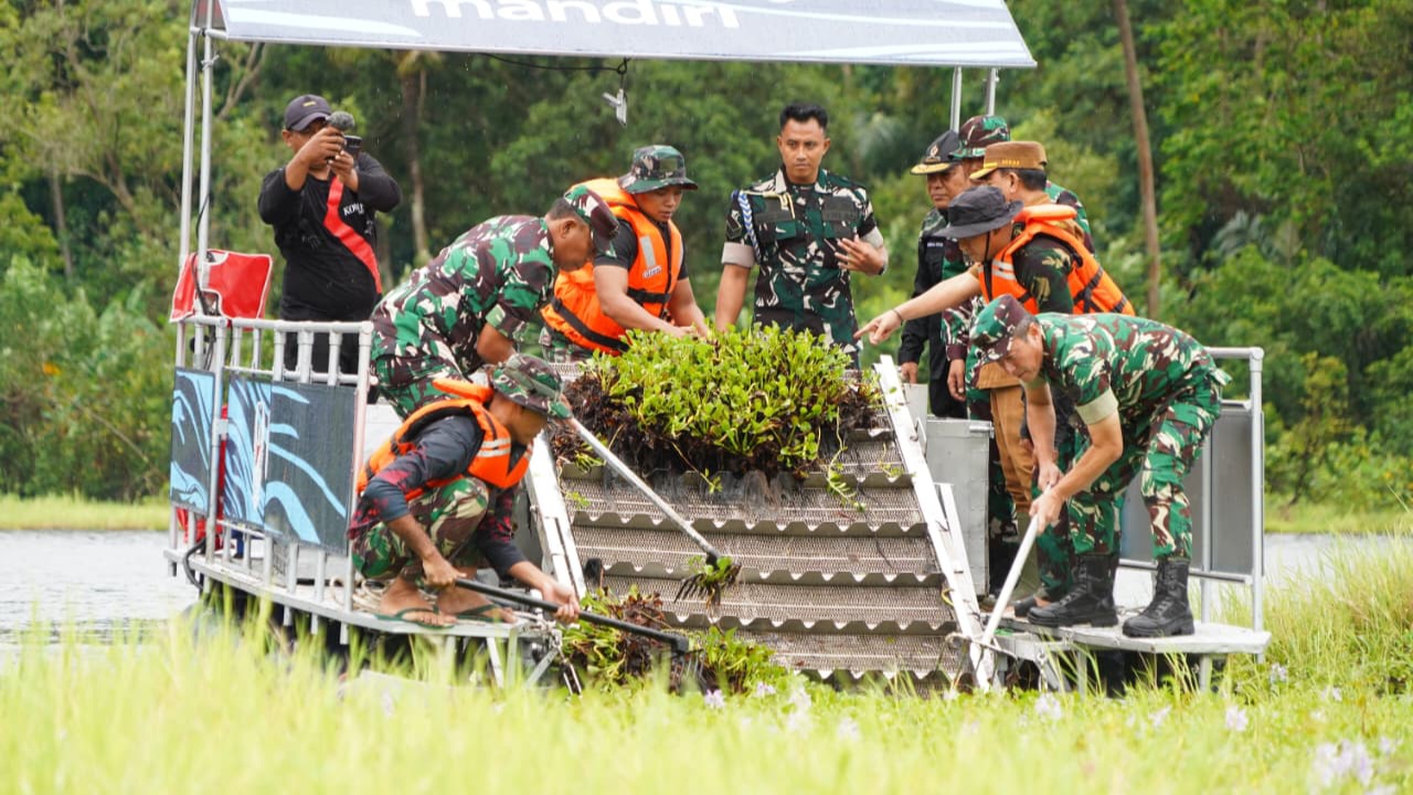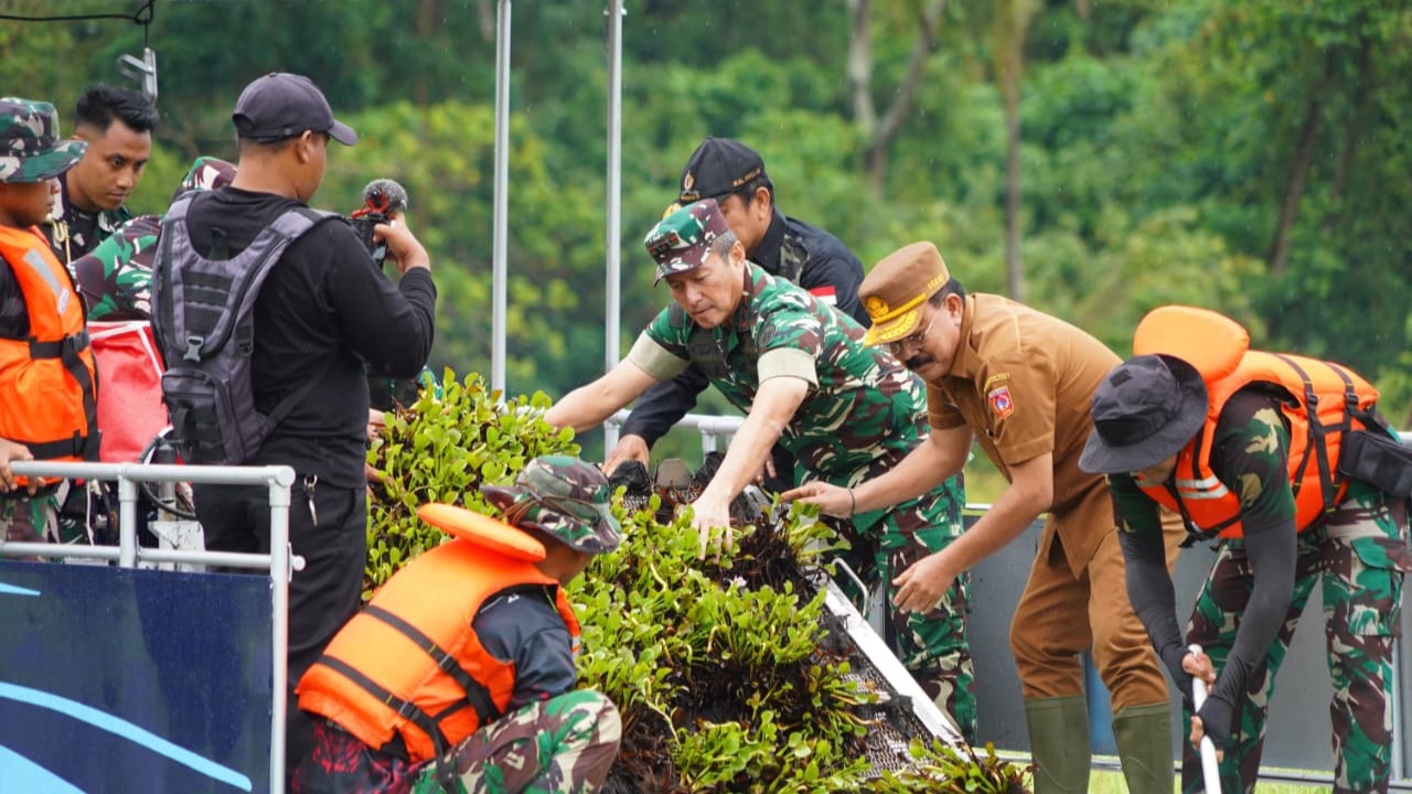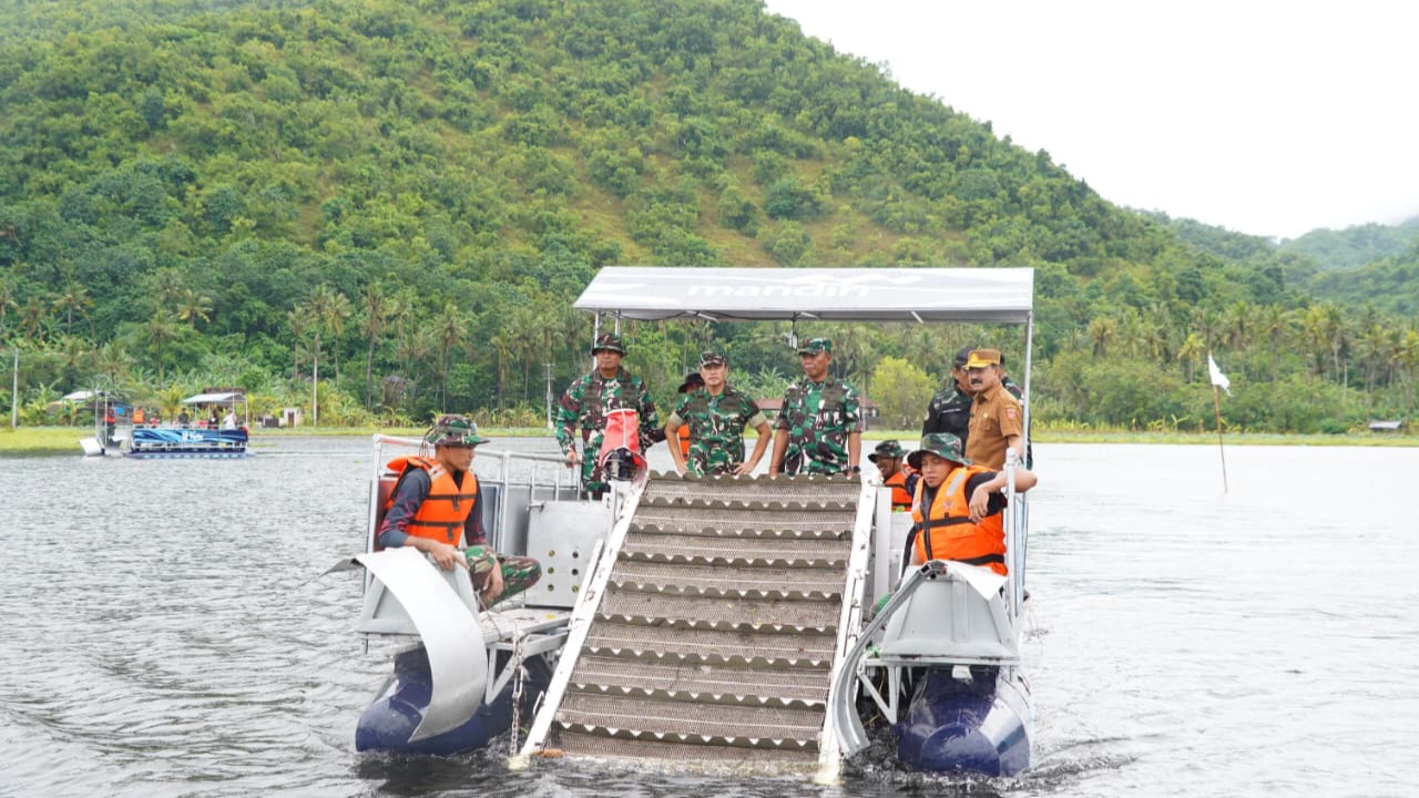 Dalam kegiatan tersebut, Pangdam bersama Danrem 163/Wira Satya turun langsung ke area danau menggunakan perahu ponton untuk melihat proses pembersihan di tengah perairan. Pangdam juga memantau mekanisme pengangkatan gulma dari danau ke daratan.