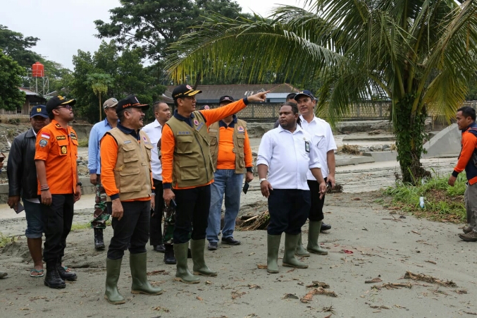 Kepala BNPB Doni Monardo memimpin langsung rapat kordinasi sekaligus evaluasi penanganan bencana banjir bandang Sentani di Jayapura. Didampingi Kepala Basarnas dan Wakil Gubernur Papua, Kepala BNPB menyampaikan langsung evaluasi tinjauan lapangannya hari ini. Kepala BNPB mengatakan hal yang terpenting saat ini adalah mengelola pengungsi dan jangan sampai ada yang mengeluh. “Kita akan memenuhi antara lain air bersih, MCK, selimut, dan matras” ucapnya. Logistik, makan dan bantuan-bantuan lainnya akan terus ditambah dari bantuan berbagai pihak. Unsur relawan, TNI dan Polri akan disiagakan disetiap titik pengungsian.” Anak-anak yang paling terpenting, jangan sampai ada yang sakit di pengungsian” tambahnya.
