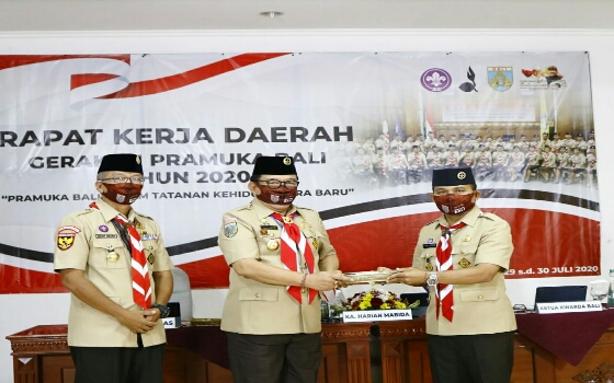 Beritafajartimur.com (Denpasar, Bali) Kwartir Daerah Gerakan Pramuka Bali menggelar Rapat Kerja Gerakan Pramuka Kwartir Daerah Bali yang dilaksanakan setiap tahun, sebagai langkah Pengendalian Operasional terhadap Program Kerja / Kegiatan Tahun 2020 dan Penyusunan Rencana Kegiatan Tahun 2021. Rapat Kerja daerah merupakan media penyambung informasi dan komunikasi antara Kwartir Daerah dengan Kwartir Cabang dan Satuan Karya dalam upaya Pengembangan dan Kemajuan Gerakan Pramuka di Kwartir Daerah Bali. Rekerda dilaksankan pada, tanggal 29 dan 30 Juli 2020, dilaksanakan secara Virtual dan Tatap Muka Terbatas.
