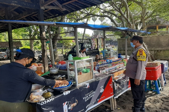 Ditambahkan oleh Kapolsek bahwa tingkat kunjungan di Pantai relatif masih sepi. “Dibandingkan masa sebelum Pandemi tentunya kunjungan relatif sepi, namun kami tidak mau abai, tentunya mencegah terjadinya kerumunan merupakan salah satu upaya pencegahan Covid-19, Kami mengharapkan masyarakat tetap disiplin menjalankan Prokes,” tutupnya.(BFT/GIA/Hen)