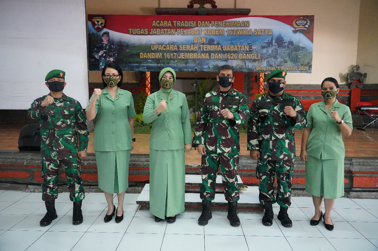 Lima jabatan yang diserahterimakan antara lain, Kepala Staf Korem 163/Wira Satya dari Letkol Kav Jacob Janes Patty yang selanjutnya mendapat jabatan baru sebagai Wakil Asisten Perencanaan Kodam IX/Udayana kepada pejabat baru Kolonel Infanteri Ida Bagus Ketut Surya W., S.E., yang sebelumnya menjabat sebagai Kapok Sahli Pangdam IV/Diponegoro. Kasiops Korem 163/Wira Satya dari Letkol Inf Bayu Panji Bangsawan, S.Si., yang selanjutnya menjabat Dandodik Bela Negara Rindam IX/Udayana kepada Letkol Kav I Made Bagus Suraputra yang sebelumnya menjabat sebagai Pabandya 1 Asro Spaban III/Litbangasro Srenad. Kasipers Korem 163/Wira Satya dari Letkol Caj Drs. I Putu Sutrisna yang selanjutnya menjabat sebagai Kalakbintaljarah Bintaldam IX/Udayana kepada Kolonel Caj Didin Rahmat Solahudin, S.I.P., yang sebelumnya menjabat Kaajendam XII/Tanjungpura.