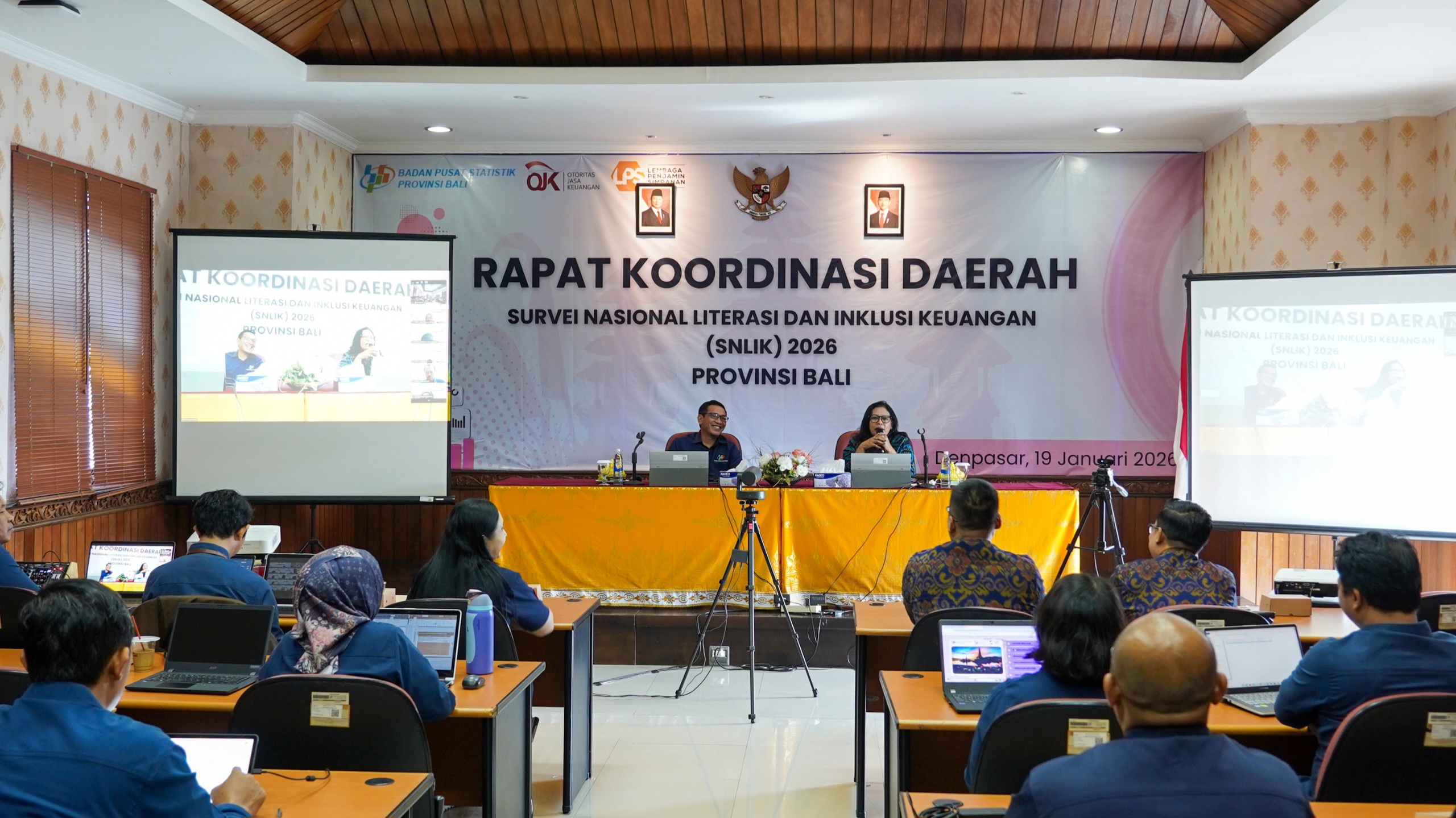 Dalam rangka mempersiapkan pelaksanaan SNLIK 2026, OJK Provinsi Bali bersama BPS Provinsi Bali menyelenggarakan Rapat Koordinasi Daerah (Rakorda) yang dihadiri oleh seluruh Kepala BPS Kabupaten/Kota se-Provinsi Bali serta petugas survei lapangan bertempat di Kantor BPS Provinsi Bali, Senin (19/1).