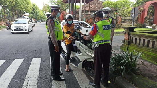 Beritafajartimur.com (Gianyar-BALI) | Dalam rangka Operasi Zebra Agung 2021, Polres Gianyar menggelar sejumlah operasi di beberapa titik atau wilayah yang dianggap berpotensi rawan Laka Lantas. Salah satunya adalah di Jalan Raya Batubulan Gianyar, Senin (22/11/2021) pagi. Petugas menemukan sejumlah pengendara yang tidak memakai helm dan diberikan teguran simpatik.