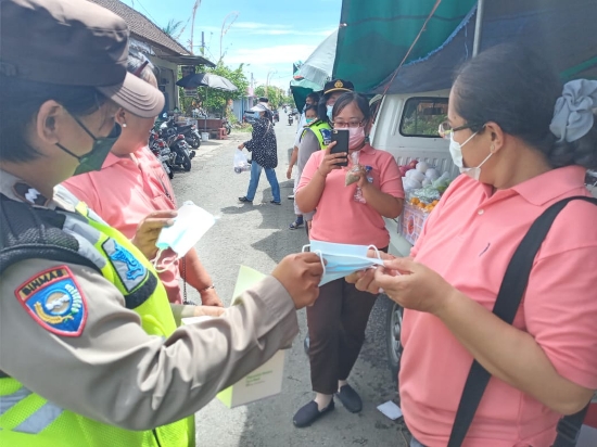“Hari ini telah dibagikan masker kepada warga masyarakat yang berada di Pasar Umum Tradisional dan puluhan leaflet dan brosur Ops Zebra Agung2021,” tambahnya.