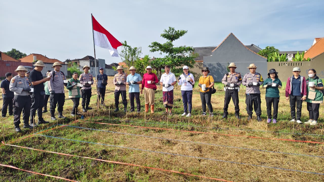 Kegiatan yang digagas Dinas Pertanian Kota Denpasar ini menjadi wujud nyata sinergi lintas sektor. Hadir dalam kegiatan tanam bersama tersebut Kepala Dinas Pertanian Kota Denpasar, A.A. Gde Bayu Brahmasta, Kapolsek Denpasar Selatan AKP Agus Adi Apriyoga, S.I.K., M.H. Kepala Desa Sanur Kauh I Made Ada, Kabid Tanaman Pangan dan Hortikultura I G.A.N. Anggreni Suwari, serta petani Subak Intaran Barat dan Penyuluh Pertanian Lapangan (PPL).