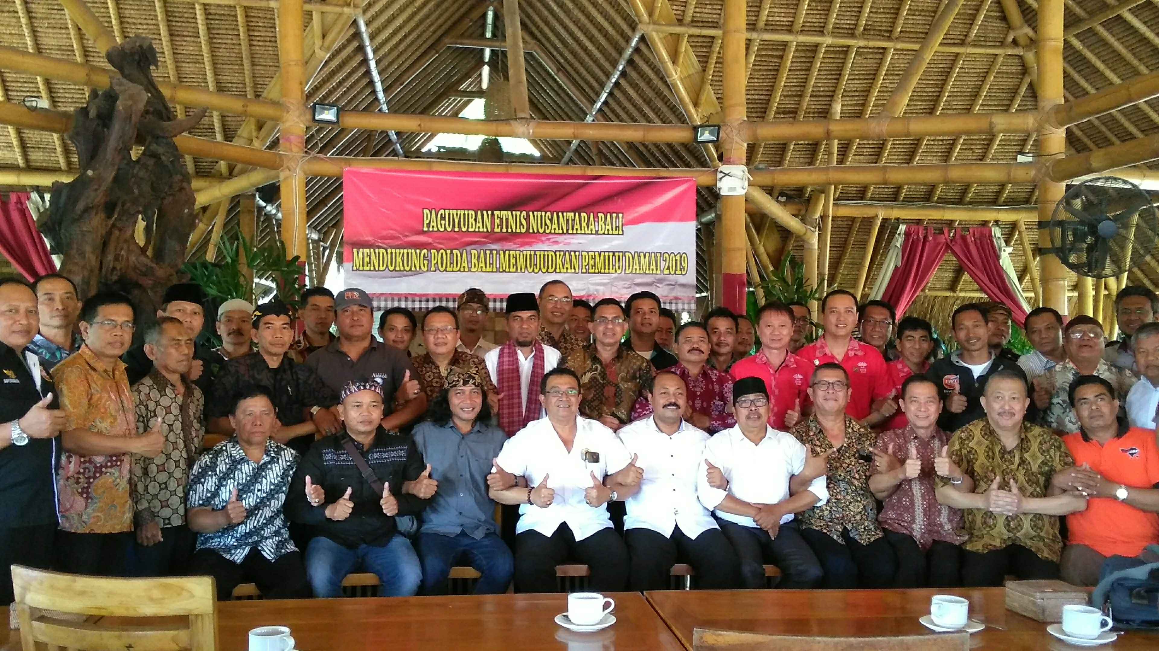 Pertemuan yang berlangsung dalam suasana keakraban ini, khusus sebagai ungkapan pihak Paguyuban Etnis Nusantara Bali yang mendukung penuh terhadap langkah Polda Bali, khususnya dalam mewujudkan Pemilu Damai 2019 mendatang.