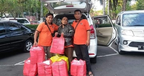 Sementara bantuan berupa beras kepada masyarakat terdampak Covid-19, kepada masyarakat sekitar di Bali.