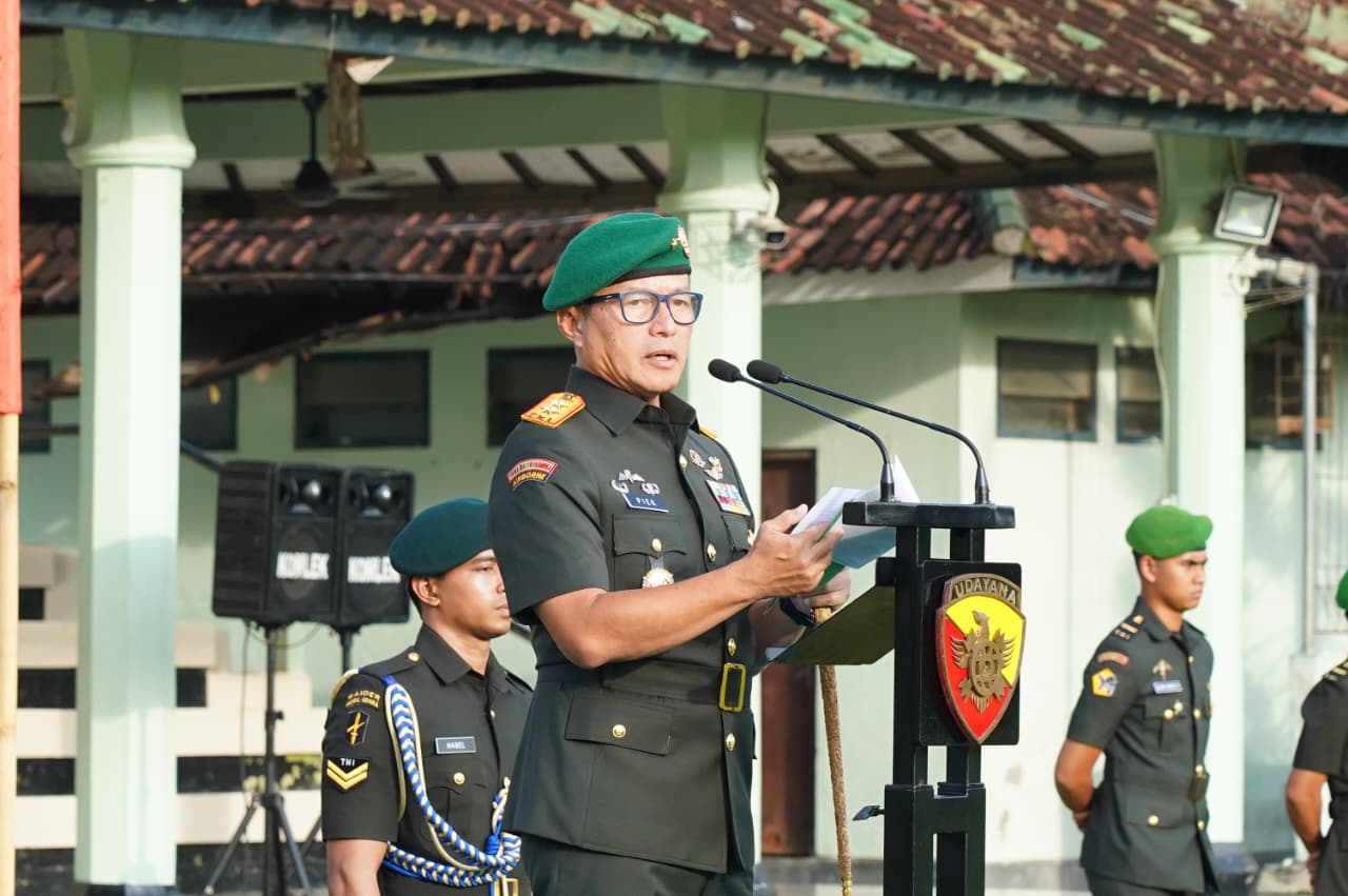 DENPASAR-BERITAFAJARTIMUR.COM – Pangdam IX/Udayana Mayjen TNI Piek Budyakto memimpin upacara peringatan Hari Juang TNI Angkatan Darat Tahun 2025 sebagai Inspektur Upacara (Irup) yang diikuti oleh seluruh personel militer dan PNS Garnisun Denpasar. Upacara digelar secara khidmat dan sederhana di Lapangan Makorem 163/Wira Satya, Denpasar, Senin (15/12/2025).