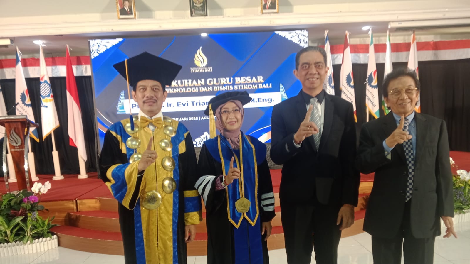 BERITAFAJARTIMUR.COM (DENPASAR) – Prof. Dr. Tri Evi Triandini, S.P., M.Eng., dikukuhkan sebagai guru besar ITB STIKOM Bali pada Sabtu, 7 Februari 2026. Evi Triandini memiliki kepakaran di bidang analisis perangkat lunak. Penetapan dilakukan berdasarkan surat keputusan Mendikti Saintek tahun 2025 tentang kenaikan jabatan akademik fungsional dosen pada 16 Desember 2025.