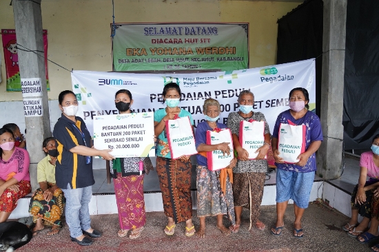 Bantuan Sembako tersebut diserahkan langsung oleh Kepala Departemen Gadai PT Pegadaian Area 2 Denpasar Suharyono didampingi Kabag CSR Purwaningsih secara simbolis kepada I Wayan Suta selaku Kelian Banjar Lebah, Desa Susut Bangli.