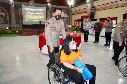 Kapolda Bali secara simbolis juga memberikan bantuan terhadap anak-anak berupa tali kasih bersama dengan seluruh undangan yang hadir pada hari itu.(alit_pid)