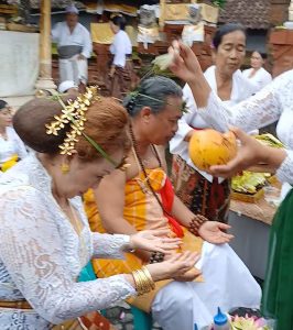 “Adapun prosesi pewintenan diawali dengan ngaturang piodalan yang dilanjutkan dengan pewintenan saraswati, mebayuh, dan mewinten dasa guna. Semua ini dimaksudkan untuk mensucikan diri,” kata Ngurah Agung.