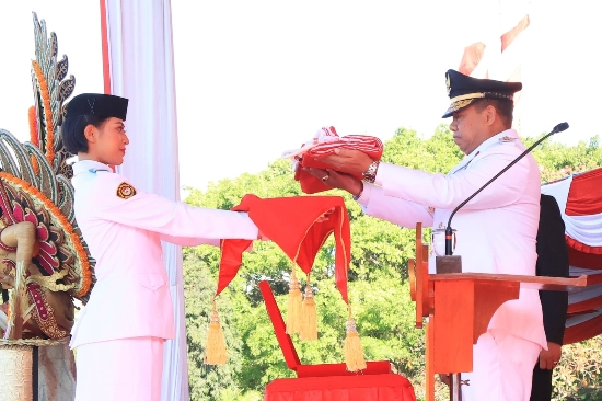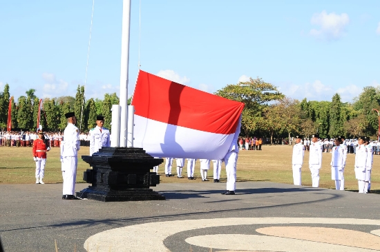 Dalam upacara tersebut, pengibaran bendera merah putih dilakukan oleh I Made Axel Bhagaskara Prawira (Denpasar), Gede Bagus Satrya Wibawa (Klungkung), dan I Wayan Ananta Wijaya (Karangasem). Ni Komang Femi Dinanti Sapit (Jembrana) bertugas sebagai pembawa baki, sementara Komandan Pasukan diemban oleh Lettu Inf. Virca Berly P. dari Yonif 900/SBW.(BFT/DPS/Red/Tutty)