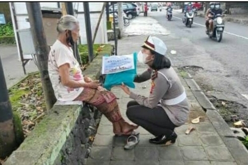 Kegiatan bakti sosial yang seyogianya diadakan di kampung/lingkungan Karang Cermen Karangasem, Kasat Lantas Polres Karangasem yang ikut serta dalam rombongan pembagian Sembako tersebut dalam perjalanan berhenti, karena melihat dan merasa terpanggil untuk menyapa seorang nenek yang tampak duduk sendiri ditepi jalan, di jln Diponegoro tepatnya didepan tempat cuci sepeda motor.