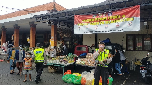 “Kegiatan himbauan, pengawasan dan pendisiplinan kepada para pedagang dilaksanakan menindak lanjuti pelaksanaan PPKM Level 3 sesuai dengan Inmendagri Nomor 24 Tahun 2021 dan SE Gubernur Bali Nomor 12 Tahun 2021 Tentang Pemberlakuan Pembatasan Kegiatan Masyarakat Level 3 di Wilayah Bali dalam pencegahan penyebaran virus Covid-19,” ujar Kapolsek Blahbatuh, AKP Yoga Widyatmoko.