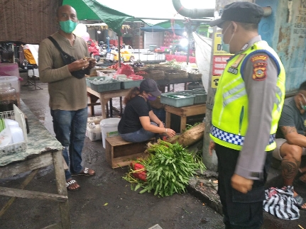 Piket Satfung Polsek Rendang terus Edukasi dan Himbau Pedagang dan Pengunjung di Pasar Sengol