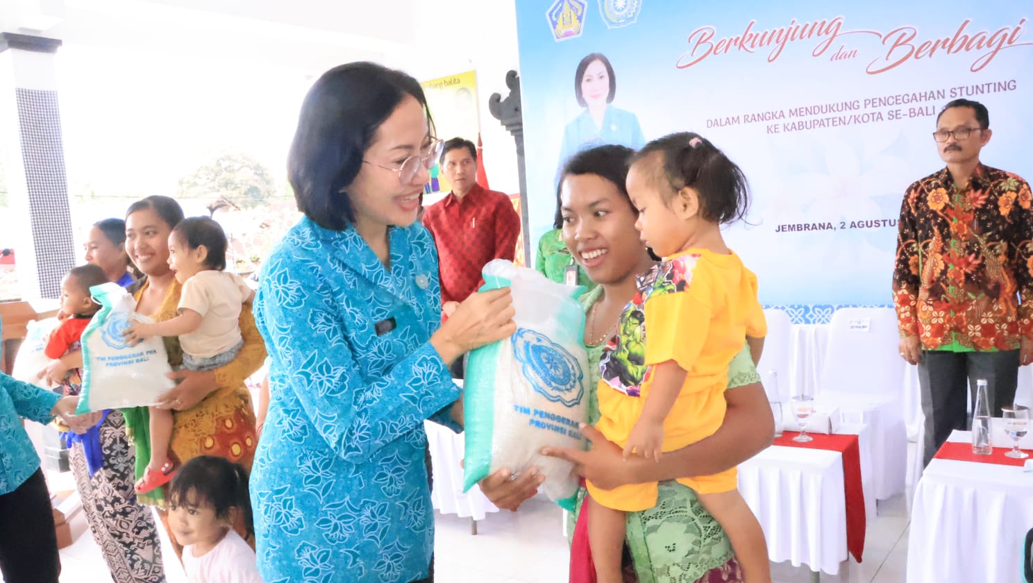 Selain itu, kegiatan ini melibatkan berbagai bentuk bantuan dari berbagai instansi. Paket berisi ikan dan olahan diberikan kepada balita dan anak-anak di TK, sementara telur, bibit cabe, dan kebutuhan balita lainnya juga diserahkan. Bantuan ini diharapkan dapat meringankan beban keluarga dan mendukung upaya pencegahan stunting di Jembrana.
