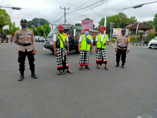 Implementasi dari itu, Polsek Blahbatuh bersama Pecalang Desa Adat Blahbatuh bersinergi melaksanakan pengamanan dan pengaturan lalu lintas pada kegiatan Upacara Keagaman masyarakat adat Blahbatuh “Ngiring Ida Bhatara Melancaran” Senin Sore/15 Nopember 2021.