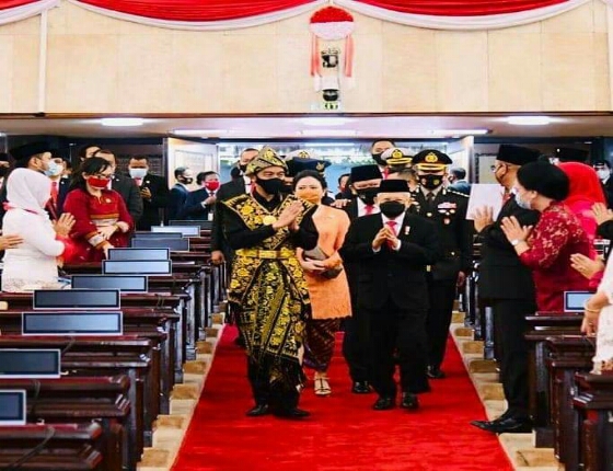 Beritafajartimur.com (Jakarta)–Presiden sebelum menyampaikan Pidato pada Sidang Tahunan MPR RI dan Sidang Bersama DPR RI dan DPD RI Dalam Rangka HUT Ke-75 Proklamasi Kemerdekaan RI, Jumat (14/8), di Gedung MPR/DPR/DPD RI, Senayan, Provinsi DKI Jakarta.