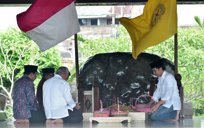 Di tengah kunjungan kerjanya ke Blitar, Jawa Timur, Presiden Joko Widodo berziarah ke makam Bung Karno, proklamator sekaligus presiden pertama Republik Indonesia. Kunjungan ini dilakukan di luar agenda kepresidenan.Saat berziarah, Presiden tampak mengenakan kemeja putih lengan panjang dan berpeci hitam. Ia tiba di lokasi pada pukul 14.15 WIB, Kamis, 3 Januari 2019.