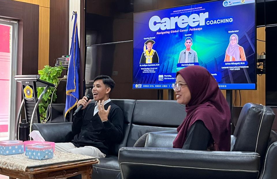 JAKARTA-BERITAFAJARTIMUR.COM,-Program Studi (Prodi) Ilmu Hubungan Internasional (HI) Fakultas Ilmu Sosial dan Ilmu Politik (FISIP) Universitas Sriwijaya menggelar Career Coaching dengan tema Navigating Global Career Pathways pada Kamis (13/11/2025) di Ruang Multimedia, Indralaya. Kegiatan ini menjadi bagian dari agenda pengembangan kompetensi mahasiswa Prodi Ilmu Hubungan Internasional FISIP Universitas Sriwijaya.