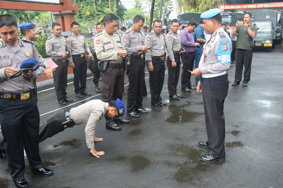 Kasi Propam Polres Badung IPTU Made Murdawan yang langsung menerjunkan seluruh anak buahnya memeriksa satu persatu penampilan dan kelengkapan administrasi personil Polres Badung.