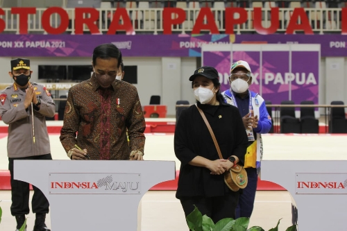Beritafajartimur.com (Papua) | Ketua DPR RI Puan Maharani mendampingi Presiden Joko Widodo meresmikan venue Pekan Olahraga Nasional (PON) XX Papua. Ia berharap agar berbagai arena tempat berlangsungnya PON terus dirawat meski event olahraga nasional itu sudah berakhir.