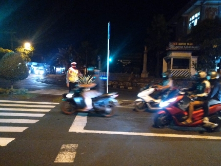 Beritafajartimur.com (Karangasem-BALI) | Patroli rutin pada malam hari personil Turjawali melaksanakan himbauan protokol kesehatan kepada pengguna jalan di Pos KTL 1 Subagan, Pengawasan dan pendisiplinan untuk tetap mematuhi protokol kesehatan dengan memakai masker, jaga jarak dan mencuci tangan, Kamis (4/11/2021).