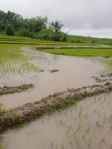 BERITAFAJARTIMUR.COM (Labuan-Bajo-MABAR) | Puluhan hektar lahan pertanian di Desa Nggilat Kecamatan Macang Pacar, Kabupaten Manggarai Barat rusak karena terendam banjir usai hujan deras yang terus mengguyur sejak Kamis, 23 Februari 2023 siang.