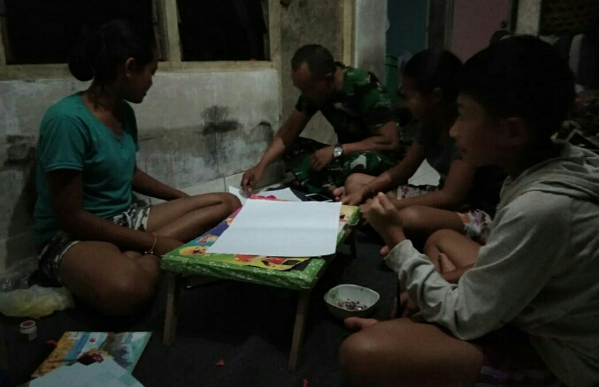 Hal itu disampaikan oleh Danki Satgas TMMD Letda Inf Ketut Joni Artana di sela-sela kegiatan anggotanya memberikan pelajaran kepada warga setempat di salah satu rumah warga.